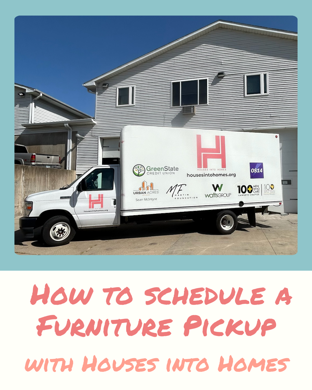 Did you know that we offer free pickup for furniture donations? If you're downsizing, moving, or getting new furniture, consider scheduling a Houses into Homes pickup for your gently-used items. We offer pickup in Coralville, Iowa City, North Liberty, Tiffin, and Solon. Follow these steps to submit a request!