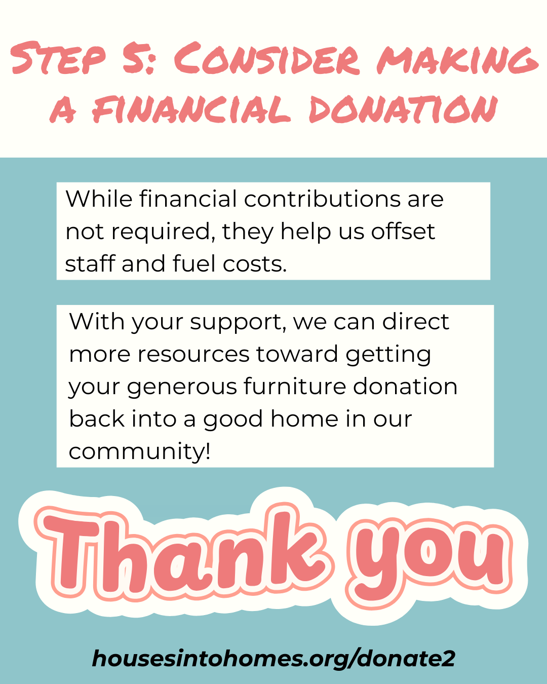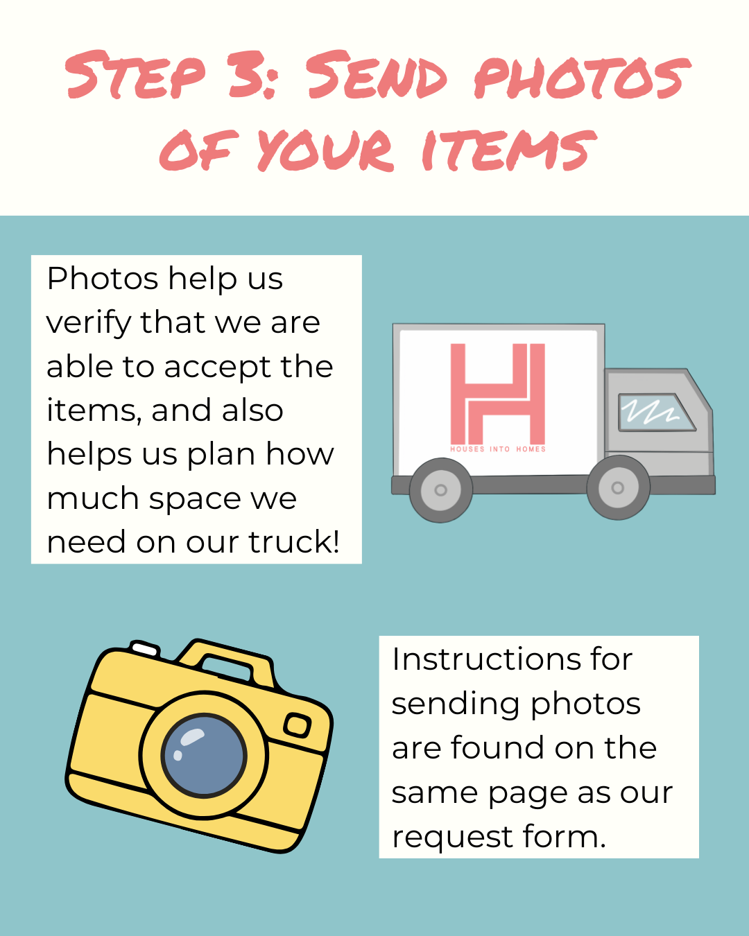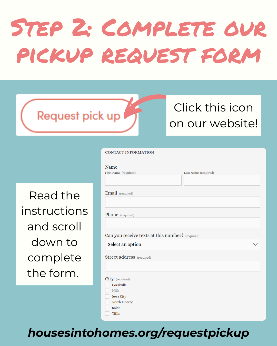 2. Complete our pickup request form (housesintohomes.org/requestpickup).